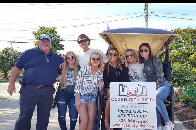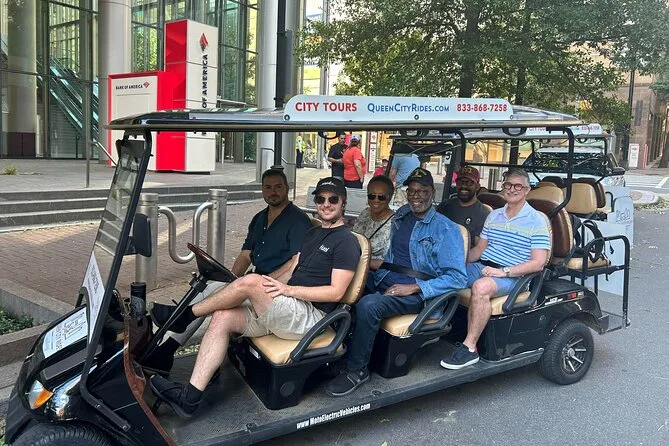 Dein Tag umfasst eine entspannte Fahrt mit dem Elektro-Cart durch Uptown Charlottes vier Viertel, begleitet von einem freundlichen lokalen Guide, der spannende Geschichten erzählt. Private Gruppen können eine Hotelabholung in Uptown organisieren. Kinder unter fünf Jahren fahren kostenlos, alle sitzen bequem – unterwegs siehst du Stadien, Museen, historische Häuser und lebendige Straßenecken, bevor du wieder am Startpunkt ankommst.