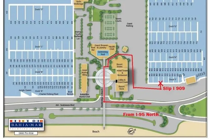 Das Boarding findet an der Dania Beach Marina, Dock G28, statt.