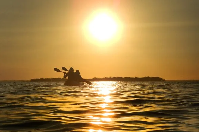 Dein Abendprogramm umfasst eine zweistündige geführte Kayak-Tour mit kompletter Ausrüstung – Kayak, Paddel, Schwimmweste (PFD), Sicherheitspfeife – und einem erfahrenen lokalen Guide, der unterwegs spannende Geschichten über Manatis und Vogelwelt erzählt, bevor ihr nach Einbruch der Dunkelheit zurückkehrt.