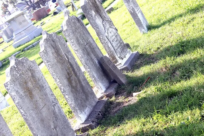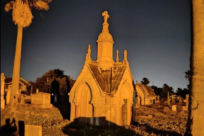 Dein Abend beinhaltet eine geführte Wanderung durch den über 200 Jahre alten Old City Cemetery in Galveston, bei der die Lady in Black recherchierte Geistergeschichten erzählt und dich einlädt, an historischen Gräbern nach Geistern zu rufen.