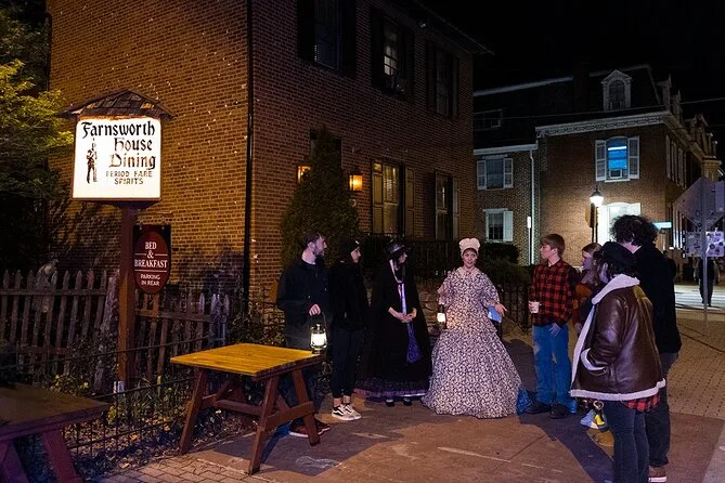 Erkunde Gettysburgs verfluchte Straßen bei Nacht mit einem lokalen Guide, der wahre Bürgerkriegsgespenstergeschichten an Orten wie dem Brickhouse Inn und Jennie Wade House erzählt. Erlebe unheimliche Momente unter uralten Bäumen, gruselige Geschichten vor historischen Gebäuden und ehrliche Reaktionen, während du dort stehst, wo Geschichte nicht zur Ruhe kommt.