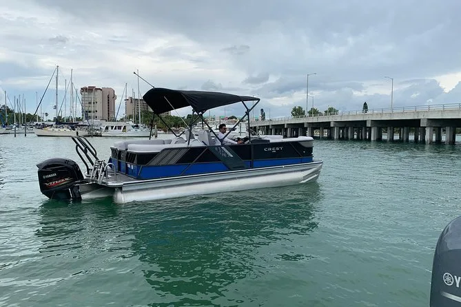 Als Erstes nahm ich den leichten Salzduft in der Luft wahr, während wir an den Stegen des Cambria Hotels warteten – nicht fischig, eher frisch und ein bisschen scharf. Über uns gibt es eine Dachbar, wo man sich einen Drink holen kann, falls man früh da ist (ich war’s, weil ich immer Angst habe, das Boot zu verpassen). Unser Kapitän winkte uns zu – mit diesem entspannten Florida-Charme – und half uns beim Einsteigen. Das Boot fühlte sich stabil unter den Füßen an, was mich beruhigte, denn ich bin nicht gerade der beste Seemann.