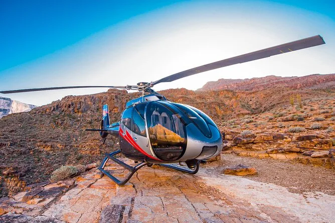 Dein Tag beinhaltet Hotelabholung und Rücktransfer in Las Vegas, alle Steuern und Gebühren, Hin- und Rückflug im klimatisierten Eco-Star Helikopter mit persönlichem Kommentar über Kopfhörer, eine private Landung tief im Grand Canyon West Rim mit Champagner-Toast und leichten Snacks unter einem indianischen Ramada-Schutzdach, bevor es bei Sonnenuntergang zurück über den Strip geht.