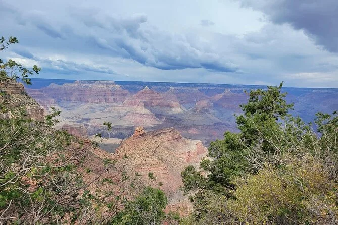 Doch nichts bereitete mich auf den ersten Blick über den South Rim des Grand Canyon vor. Am Yavapai Point zu stehen, ist fast unbegreiflich – das Gehirn kann kaum fassen, wie tief es hinabgeht und wie viele Farben die Felsen zeigen. Mark führte uns ein Stück auf dem Trail of Time, hielt immer wieder an, um uns Fossilien im Weg zu zeigen („Älter als die Dinosaurier“, sagte er). Die Sonne spielte mit den Wolken, mal tauchte alles in goldenes Licht, dann plötzlich in ein tiefes Violett. Ich hätte nicht gedacht, dass ich mich so still fühlen würde. Wahrscheinlich geht das jedem so, der wirklich dort ist.
