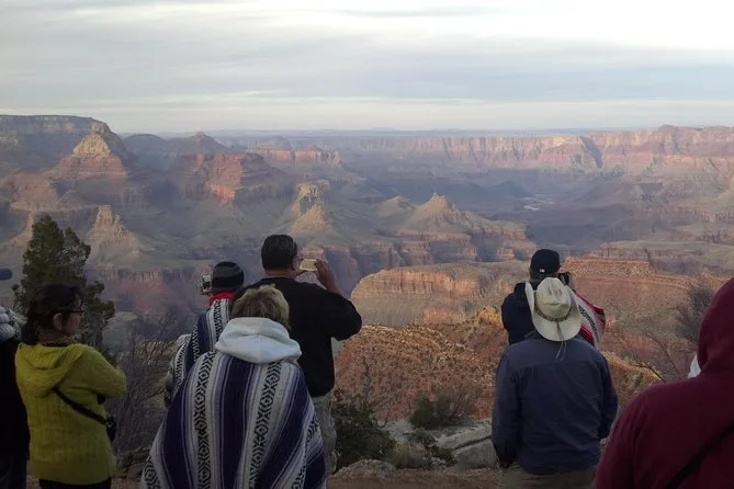 Dein Abend beinhaltet Abholung und Rückfahrt vom zentralen Punkt in Tusayan, Wasserflaschen für alle, Zugang über exklusive Waldgenehmigungen, die Warteschlangen am Südeingang umgehen, sowie Stopps an Aussichtspunkten wie Pipe Creek Vista und Grandview Point vor der Rückkehr nach Sonnenuntergang.