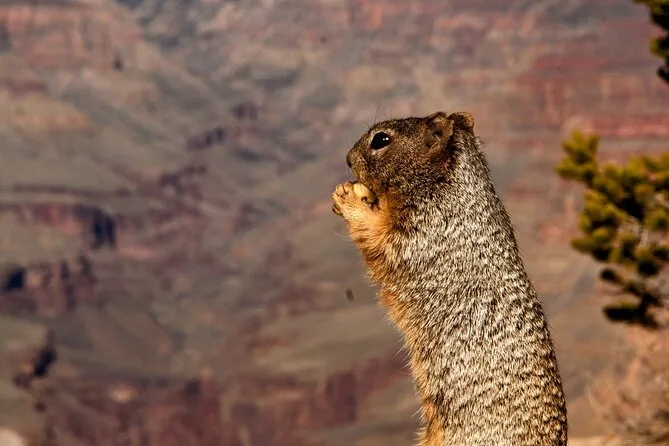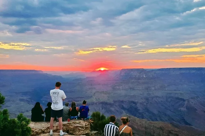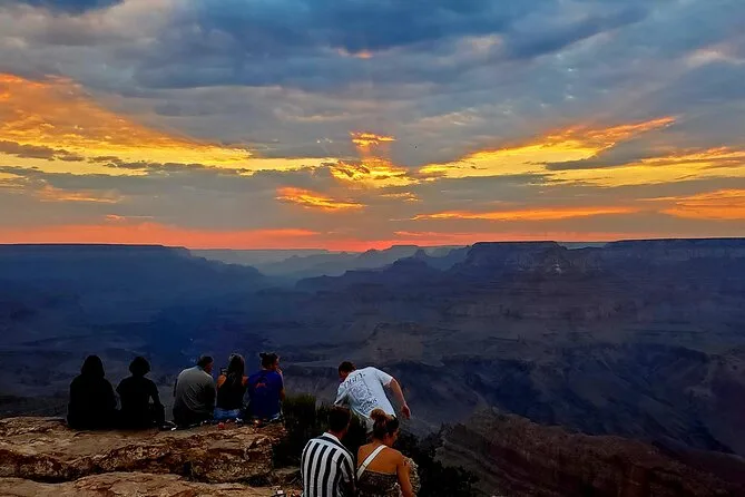 Erlebe, wie die Sonne den Grand Canyon South Rim in Farben taucht, während dein Guide spannende Geschichten erzählt und mit starken Ferngläsern verborgene Details zeigt. Genieße Snacks bei Stopps entlang der Desert View Drive und ein entspanntes Abendessen in einem gemütlichen Lokal. Am Ende fühlst du dich, als wärst du wirklich Teil dieses Ortes gewesen.