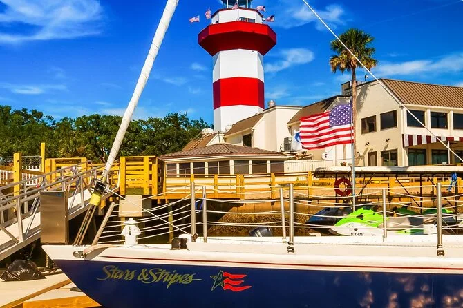Dein Nachmittag beinhaltet eine 90-minütige Segeltour auf der echten America's Cup 12-Meter Stars & Stripes Yacht ab Harbour Town Marina auf Hilton Head – mit der Möglichkeit, als Crew mit anzupacken – und viel Lowcountry-Kulisse, bevor ihr gemeinsam zurück an Land fahrt.