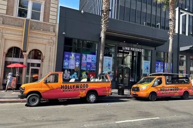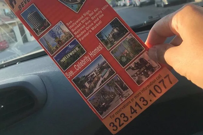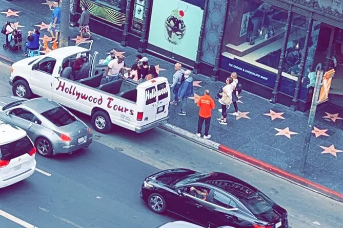 Du siehst das Hollywood Sign (vom Mulholland Drive), Promi-Villen in Beverly Hills, Rodeo Drive, Sunset Strip, Walk of Fame, TCL Chinese Theater, Dolby Theater und mehr.