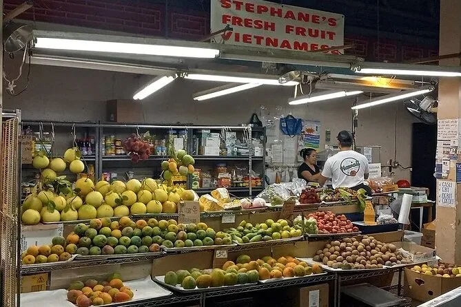 Ich hatte längst den Überblick verloren, wie viele Stopps wir schon gemacht hatten. Wir probierten Entenbraten (die Haut knackte beim Reinbeißen), dann vietnamesischen Pandan-Kuchen, der so grün war, dass er fast unter den Neonlichtern leuchtete. Einmal reichte Li uns Fruchtscheiben, die ich nicht kannte – säuerlich, saftig, mit klebrigen Fingern danach – und erklärte, dass diese nur zu bestimmten Jahreszeiten zu finden sind. Es fühlte sich an, als würde man ein Geheimnis erfahren, das Einheimische sonst kaum aussprechen.