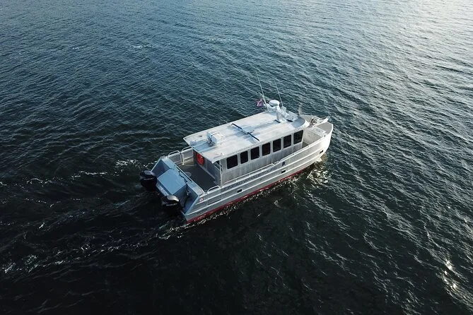 Dein Tag beginnt mit der Hin- und Rückfahrt per Bus von zentralen Punkten in Juneau zum Hafen, wo du auf einen speziell gebauten Katamaran für 20 Personen mit beheizter Kabine und Rundum-Deck steigst; kostenloses Wasser steht bereit (eigene Snacks kannst du mitbringen). Während der Tour ist immer jemand da, der auf Adler hinweist oder Fragen beantwortet, bevor es gemeinsam zurück in die Stadt geht.