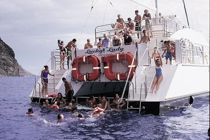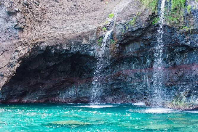 Dein Tag umfasst eine Bootstour entlang der Na Pali Coast auf Kauai mit einem erfahrenen Kapitän, der von der US-Küstenwache lizenziert ist, und einem professionellen Team. Alle Schnorchelausrüstungen und fachkundige Einweisungen sind inklusive, ebenso frische Wasserduschen danach. Zum Mittag gibt es selbst zusammengestellte Sandwiches mit Chips und Nudelsalat sowie Erfrischungen und Insel-Drinks – Bier, Wein und Mai Tais für Gäste ab 21. Die gesamte Sicherheitsausrüstung wird gestellt; du brauchst nur Abenteuerlust (und vielleicht eine Regenjacke).