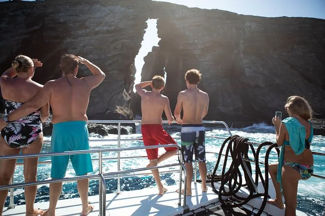 Als wir die Na Pali Küste entlangfuhren, sahen die Klippen wirklich unglaublich aus – grüne Falten, die steil ins blaue Wasser stürzen. Kimo zeigte uns Wasserfälle, die ich sonst nie entdeckt hätte; er meinte, manche tauchen nur nach starkem Regen auf. Wir bremsten für Spinner-Delfine – dutzende wirbelten unter dem Rumpf – und ich schwöre, alle hielten kurz den Atem an. Als wir Richtung Ni’ihau übersetzten, änderte sich das Meer, wurde rauer und die Farbe dunkler. Die Crew fragte immer wieder nach, ob’s allen gut geht, und reichte Ingwerbonbons gegen Übelkeit herum. Ich hätte nicht gedacht, dass wir so viel offene See vor uns haben, bis endlich der Lehua Krater auftauchte – dieser seltsame Felsbogen mit kreisenden Vögeln darüber.