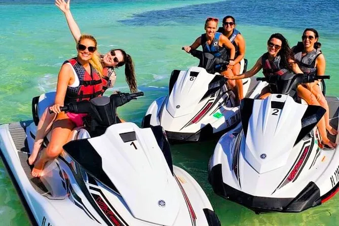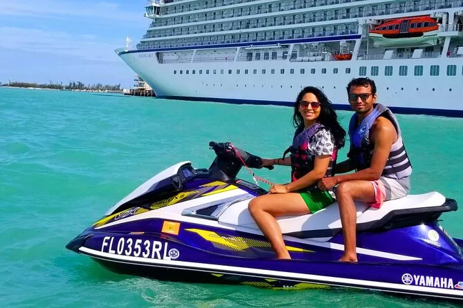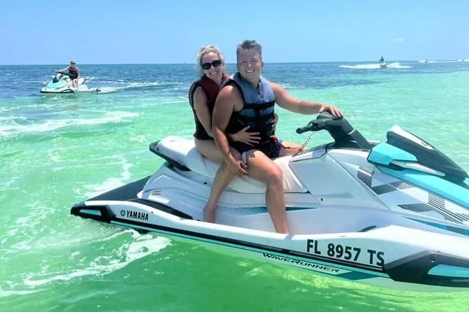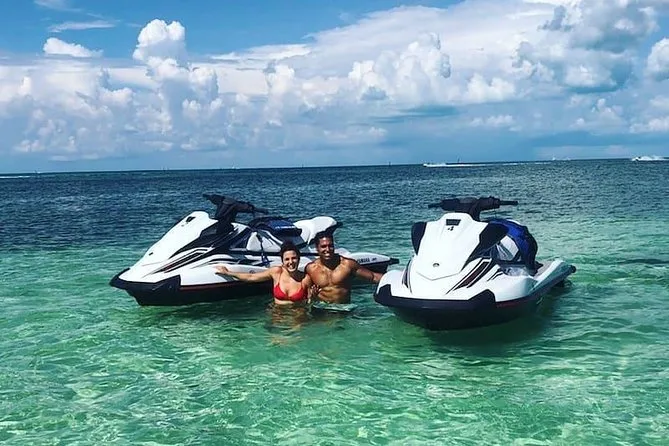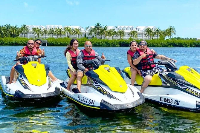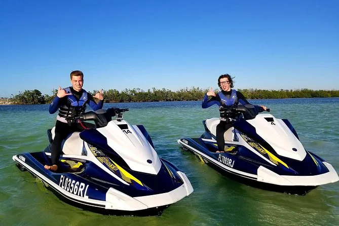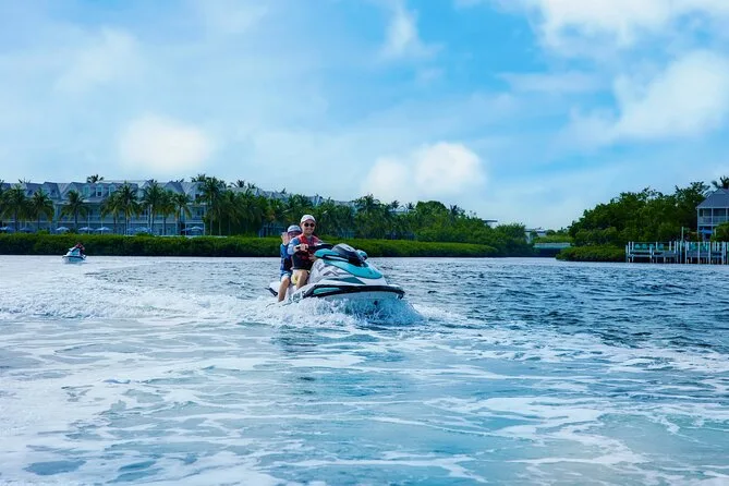 Dein Tag beinhaltet die Nutzung brandneuer High-Performance-Jet-Skis für zwei Personen ohne Aufpreis, geführt von freundlichen Einheimischen, die unterwegs spannende Geschichten erzählen. Der kostenlose Shuttle bringt dich stressfrei zum Start; nach der Einweisung umrundest du Key West mit Stopps an bekannten Orten wie dem Southernmost Point und versteckten Sandbänken, bevor du dich an Land unter Frischwasserduschen wieder erfrischst.