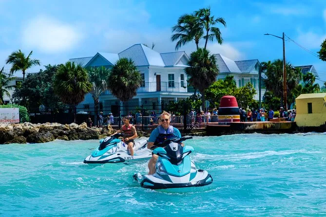 Du fährst mit High-Performance-Jet-Skis entlang der kompletten Küste von Key West, begleitet von einem lokalen Guide, der dir spannende Geschichten und besondere Orte zeigt. Freu dich auf salzige Luft, Spaß beim Fahrerwechsel an Sandbänken und Stopps an Highlights wie dem Southernmost Point – inklusive bequemer Shuttle-Abholung. Schnell, aufregend und trotzdem entspannt.