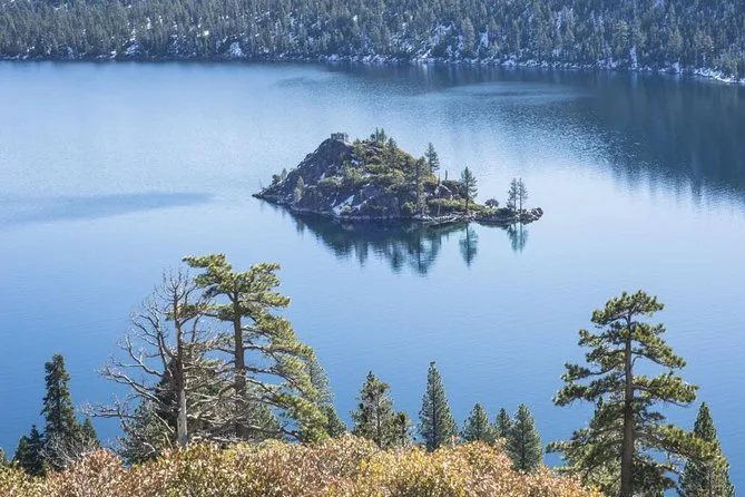 Wir starteten kurz nach dem Frühstück in South Lake Tahoe, die Fensterscheiben leicht beschlagen von Gesprächen und Kaffee. Unser Guide Jim, der jeden Winkel des Sees zu kennen schien, zeigte auf die Stellen, wo die Kiefern lichter werden und das erste Blau des Wassers aufblitzt. Ich drückte die Stirn ans Fenster, während wir zum Emerald Bay State Park hinauffuhren. Die Luft draußen war frisch und fast süßlich nach Kiefer, und hinter mir hörte ich ein Paar leise darüber diskutieren, welche Seite wohl die bessere Aussicht bot – ehrlich gesagt, beide Seiten waren einfach atemberaubend.