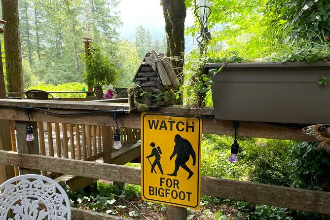 Dein Tag beinhaltet bequemen Transport mit Fahrer-Guide inklusive Abholung und Rückfahrt in Seattle, Wasserflaschen und Snacks unterwegs – plus viele Stopps: von Bigfoot-Fotos am Espresso Chalet über Spaziergänge an Wasserfällen bis zu zwei Stunden Freizeit in Leavenworth zum Essen oder Shoppen.