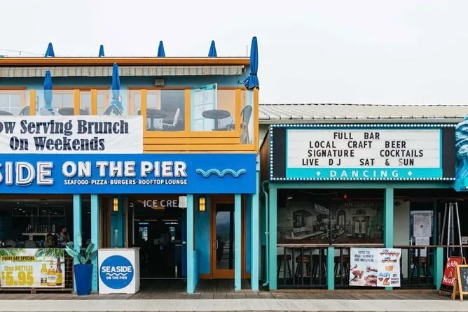 Der erste Halt war der Santa Monica Pier (oder Hollywood, je nachdem, wo man startet – wir begannen in Hollywood). Die salzige Meeresluft schlug mir entgegen, noch bevor wir ausstiegen. Eine Mischung aus Sonnencreme, frisch frittierten Churros und Ozeanbrise machte mich sofort hungrig. Wir schlenderten am alten Karussell vorbei und sahen einem Typen zu, der versuchte, bei einem dieser unmöglichen Jahrmarktspiele eine riesige Plüschbanane zu gewinnen. Ich wollte ein Foto machen, aber mein Objektiv beschlug wegen des Temperaturwechsels – klassisch.