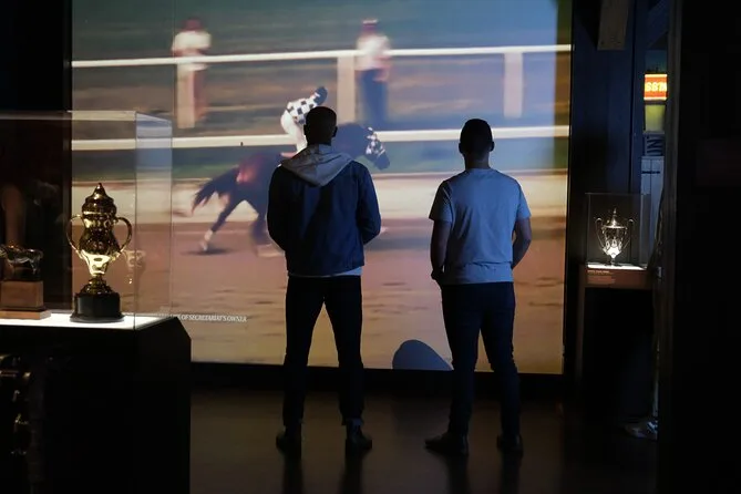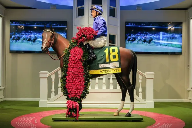 Dein Erlebnis umfasst den Eintritt zu allen Ausstellungen im Kentucky Derby Museum, den 18-minütigen immersiven 360°-Film „The Greatest Race“ sowie eine 30-minütige geführte Tour über die Rennbahn bei Churchill Downs – bei jedem Wetter.