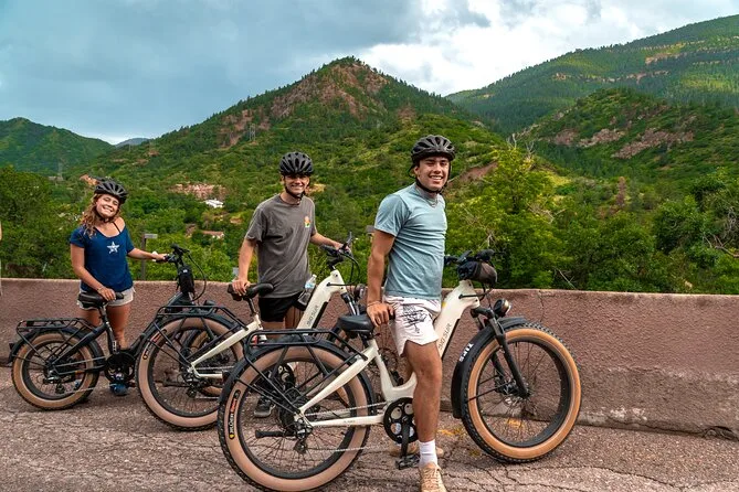 Dein Tag beinhaltet ein E-Bike mit Pedalunterstützung (so macht das Bergauffahren richtig Spaß), einen Helm für deine Sicherheit, Wasserflaschen für die trockenen Momente in Colorado – und einen lokalen Guide, der genau weiß, wo es spannende Geschichten gibt oder wo man Mineralwasser probieren kann, bevor es zurück in die Stadt geht.
