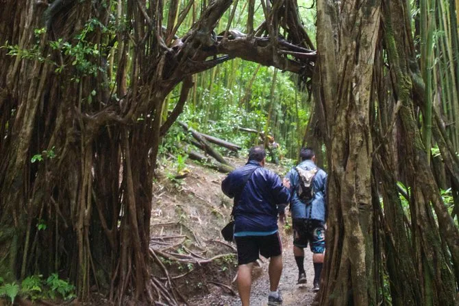 Dein Tag umfasst den Hin- und Rückshuttle vom Waikiki Hotel, Wasserflaschen für die Wanderung, Eintritt ins Nationalparkgebiet sowie Mückenspray und Wanderstöcke, die vor dem Aufstieg zu den Manoa Falls verteilt werden.