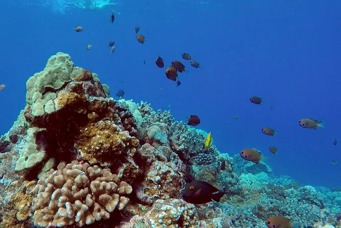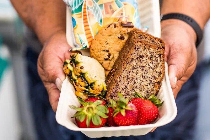 Dein Tag: Exklusive Raftingtour mit zertifizierten Rettungsschwimmern als Guides, komplette Schnorchelausrüstung (Maske, Flossen), Schwimmhilfen, spannende Infos von Meeresexperten, dazu Frühstücksgebäck oder Snacks wie frisches Obst und selbstgebackene Kekse sowie Getränke wie Softdrinks oder grüner Tee – alles an Bord, während du Delfine beobachtest oder nach dem Schnorcheln an Lanais oder Mauis Küste entspannst.