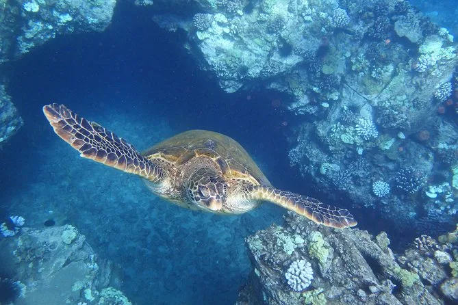 Du kannst Rifffische, Seeigel, Mantarochen, selten Haie, Korallenformationen und vor allem Meeresschildkröten in Turtle Town entdecken.