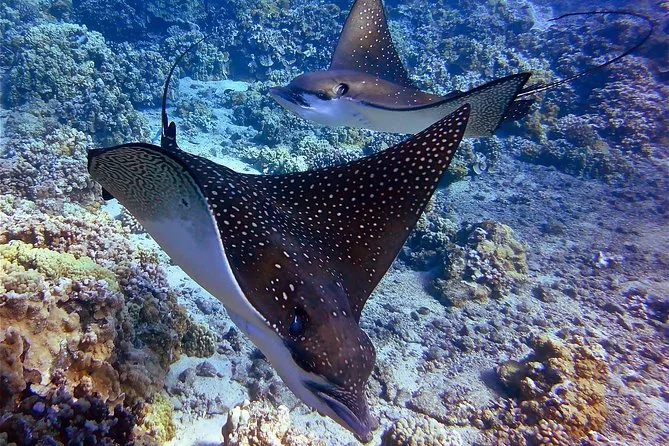 Dein Tag beginnt mit dem Einsteigen auf Mauis einzigen dreistöckigen Katamaran im Ma’alaea Hafen, wo dich ein kontinentales Frühstück mit frischen Backwaren und heißem Kaffee erwartet. Die komplette Schnorchelausrüstung und Schwimmhilfen sind bereit. Nach dem Erkunden von Molokini-Krater und Turtle Town mit freundlicher Unterstützung der Crew (und viel Zeit für Rutschen oder das Glasbodenzimmer) gibt es Mittagessen: Truthahnsandwiches oder Veggie-Burger (bei Vorbestellung) mit Chips, Salaten, Obstplatten, Keksen, Softdrinks und Säften, bevor es gemeinsam zurück ans Ufer geht.