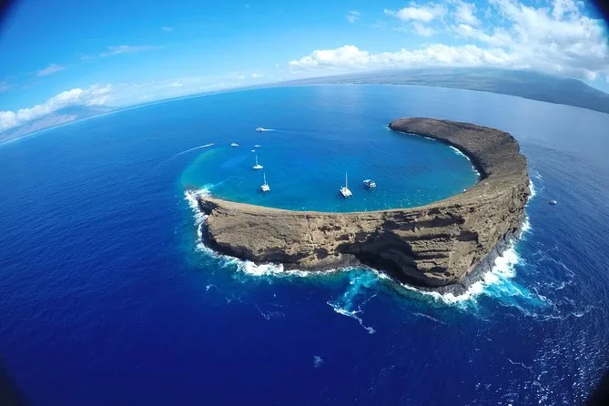 Die Tour startet um 7:30 Uhr im Ma’alaea Hafen; rechne mit mehreren Stunden inklusive Stopps am Molokini-Krater und Turtle Town, Rückkehr gegen Mittag.