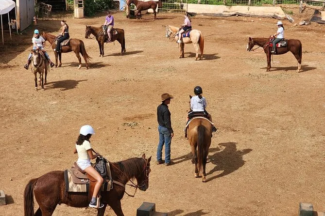 Dein Tag beinhaltet die komplette Ausrüstung sowie eine Sicherheitseinweisung, bevor du mit echten hawaiianischen Paniolos auf Mauis Circle M Ranch 1,5 Stunden lang geführt reitest – einfach ankommen und Spaß haben (Humor nicht vergessen!).