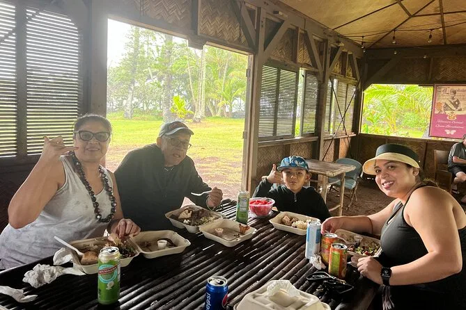 Softdrinks und Wasser sind inklusive; für Essen wie Bananenbrot oder Huli Huli Chicken hältst du an lokalen Ständen (auf eigene Kosten).