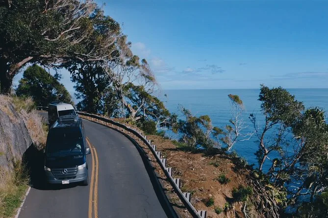 Dein Tag beinhaltet Hotelabholung (bitte prüfe deine Region auf Maui), Snacks und Getränke während der Fahrt, Eintritt zum Waiʻanapanapa State Park, Parkgebühren, ein frisches Farm-to-Table-Mittagessen mit Steinofenpizza und Salaten bei Hana Farms sowie Zeit, um Gärten zu erkunden oder lokale Produkte zu shoppen – alles in bequemen Vans.
