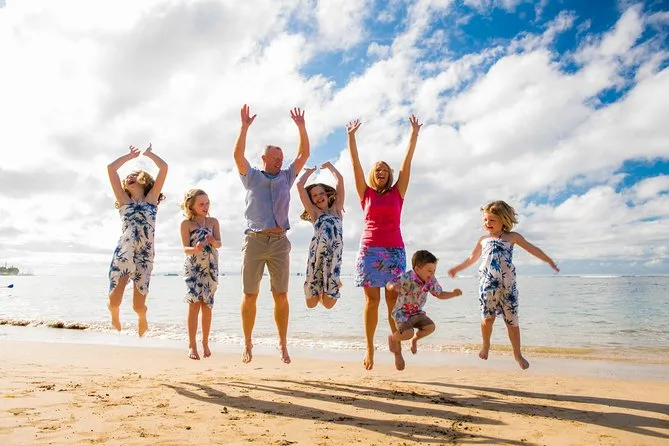 Dein Erlebnis umfasst etwa eine Stunde mit einem lokalen hawaiianischen Fotografen an einem State Beach Park, der auf eure Gruppe abgestimmt ist, inklusive aller erforderlichen Genehmigungen nach hawaiianischem Recht, Zugang zu einer Online-Galerie für 60 Tage mit hunderten Porträts zur Auswahl sowie barrierefreie Wege für Kinderwagen und Rollstühle. Digitale Fotos sind nach der Sichtung separat erhältlich.