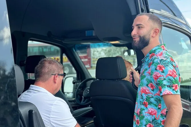 • Fahrt im schwarzen Mercedes Sprinter Van