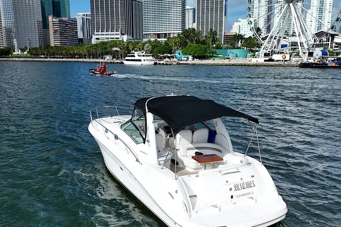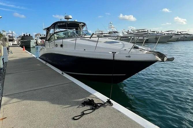 Dein Tag beinhaltet eine private 2-stündige Yacht-Tour mit erfahrenem Kapitän, Nutzung eines Kühlers mit Eis für deine eigenen Getränke und Snacks, alle Liegegebühren, eine Toilette an Bord für Komfort sowie eine Bluetooth-Anlage, damit du deine Lieblingsmusik hören kannst, während du an den bekanntesten Sehenswürdigkeiten Miamis vorbeigleitest.