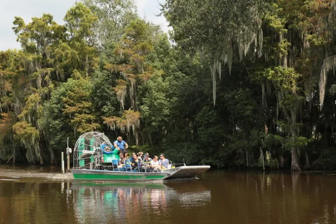 Spüre den Wind bei einer Airboat-Tour durch Louisianas Zypressensümpfe nahe Jean Lafitte. Beobachte sonnenbadende Alligatoren und Reiher über dir. Mit einem lokalen Guide, spannenden Geschichten und optionalem Hoteltransfer – ein unvergesslicher Ausflug ab New Orleans, der die Stadt weit hinter sich lässt.