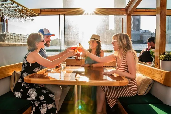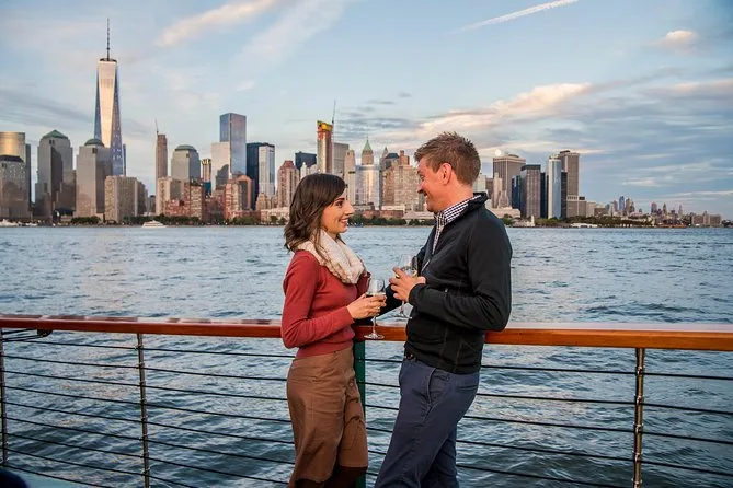 Dein Abend umfasst eine 90-minütige Yachtfahrt rund um Manhattan mit beeindruckenden Ausblicken auf Ellis Island, das One World Trade Center und Nahaufnahmen der Freiheitsstatue. Du hast deinen eigenen reservierten Tisch und genießt ein kostenloses Getränk, bevor es nach Sonnenuntergang zurück ans Ufer geht.