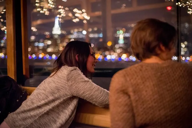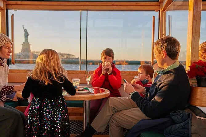 Dein Abend beinhaltet ein kostenloses Getränk (z. B. gewürzte heiße Schokolade), eine Auswahl selbstgebackener Weihnachtskekse, gemütliche, zugewiesene Sitzplätze im beheizten großen Salon der Yacht Manhattan oder Manhattan II, Live-Jazz-Weihnachtslieder mit lokalen Gastgebern, während du an Ellis Island vorbeifährst und der Freiheitsstatue ganz nah kommst – mit viel Zeit, um drinnen Wärme zu genießen oder frische Luft auf dem Außendeck zu schnappen, bevor es zurück an Land geht.