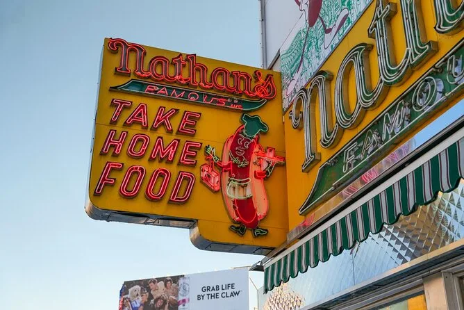 Es gibt Zeit für ein Mittagessen bei Nathan’s auf Coney Island; die Kosten für das Essen sind nicht im Preis enthalten.
