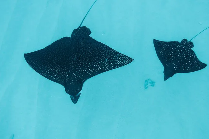 Dein Tag beinhaltet Wasserflaschen, Snacks, grünen Tee oder heiße Schokolade nach dem Schwimmen, die Nutzung aller Schnorchelausrüstung sowie Paddleboards und Kajaks an Bord. Das Mittagessen besteht aus einem Truthahnsandwich oder vegetarischem Wrap (bei Vorbestellung) und es gibt eine warme Ionendusche zum Abspülen vor der Rückkehr an Land.