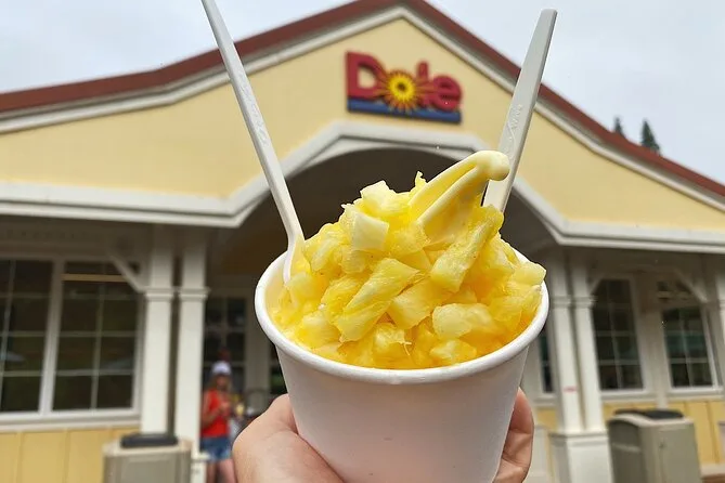 Erkunde Oahus Küste mit einem lokalen Guide, probiere frische Macadamianüsse und tropische Früchte, such dir dein Lieblingsessen bei den Food Trucks am Kahuku Sugar Mill aus und genieße zum Abschluss das Ananas-Eis bei der Dole Plantation – inklusive bequemer Hotelabholung und einer kleinen Gruppe für ein persönliches Erlebnis.