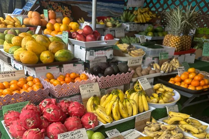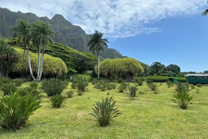 Dein Tag beinhaltet den Hin- und Rücktransport von Hotels in Waikiki oder Kahala in einem klimatisierten Fahrzeug mit einem englischsprachigen lokalen Guide; du probierst Macadamianüsse bei Tropical Farms und hast Zeit, dir dein Mittagessen bei den Food Trucks am Kahuku Sugar Mill auszusuchen, bevor es am späten Nachmittag zurückgeht.