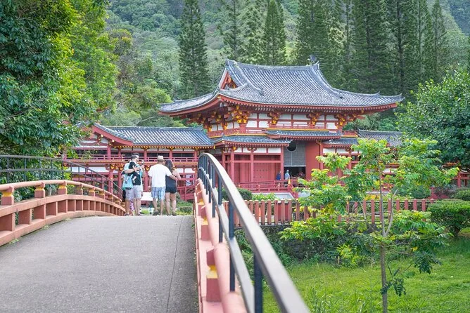 Dein Tag beinhaltet bequemen Transport im klimatisierten Fahrzeug mit Abholung und Rückfahrt in Waikiki, fachkundige Führung durch Oahus Highlights, alle Eintrittsgelder inklusive Byodo-In Tempel und Waimea Valley sowie Zeit zum Schwimmen am Wasserfall, sofern das Wetter passt. Das Mittagessen kannst du unterwegs selbst wählen, bevor es abends zurück nach Waikiki geht.