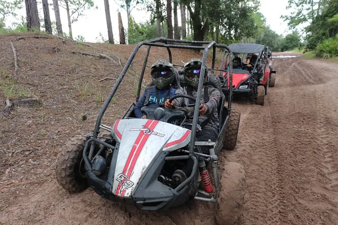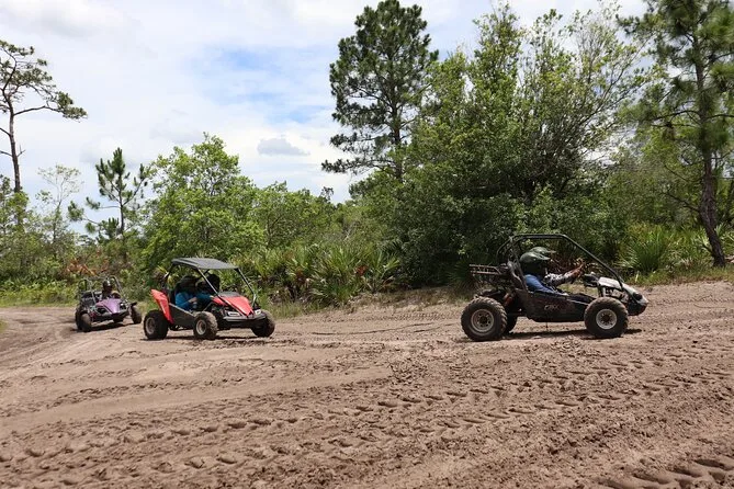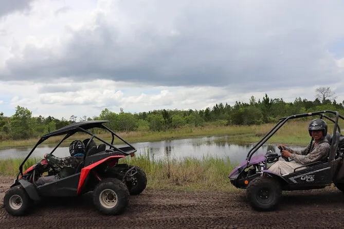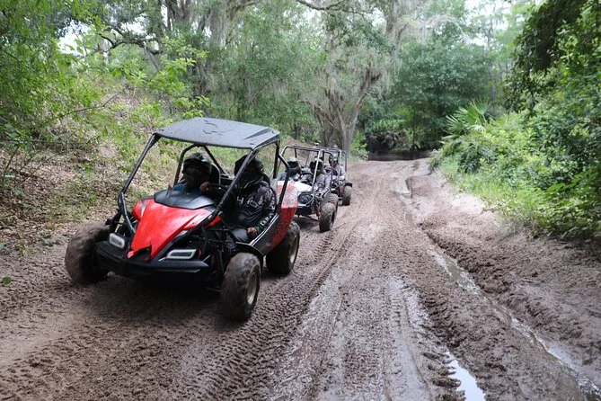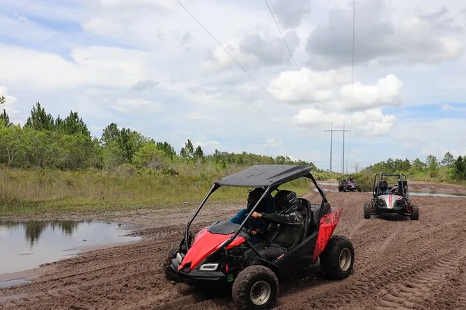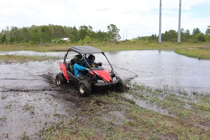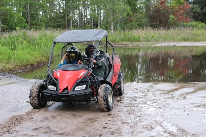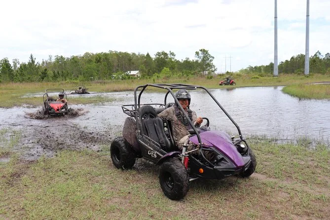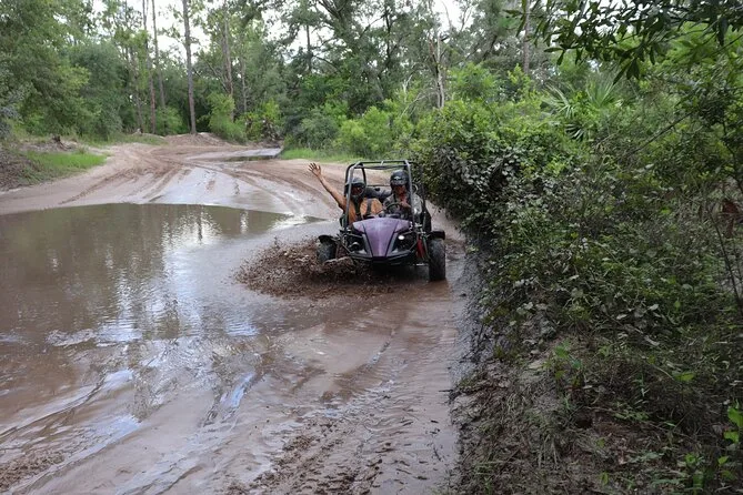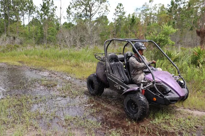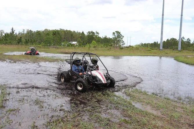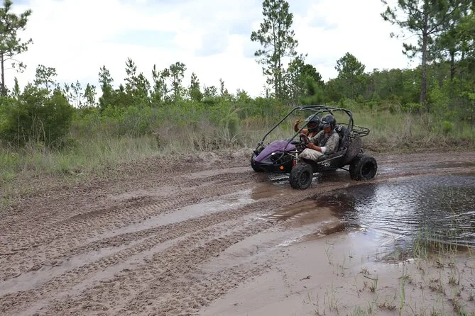 Dein Tag beinhaltet die Nutzung eines Dune Buggys durch Floridas Natur rund um Orlando, inklusive Helm und Schutzbrille für deine Sicherheit. Fahrertausch ist möglich, wenn du alt genug bist – und das Ganze begleitet von erfahrenen lokalen Guides auf deinem schlammigen Abenteuer.