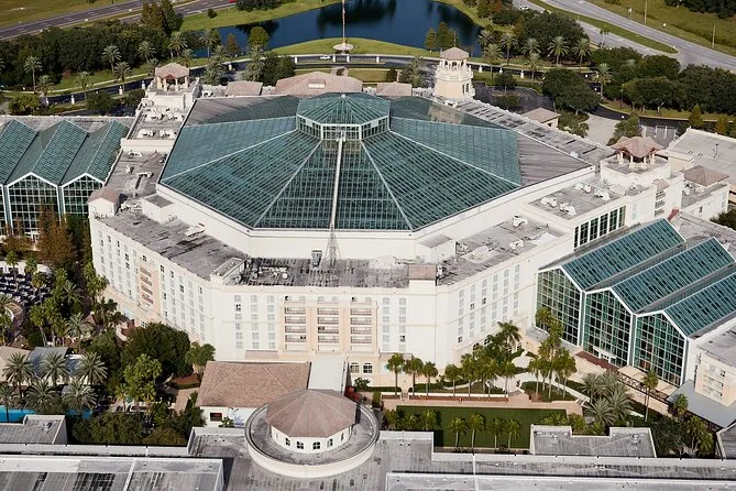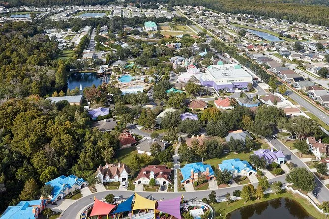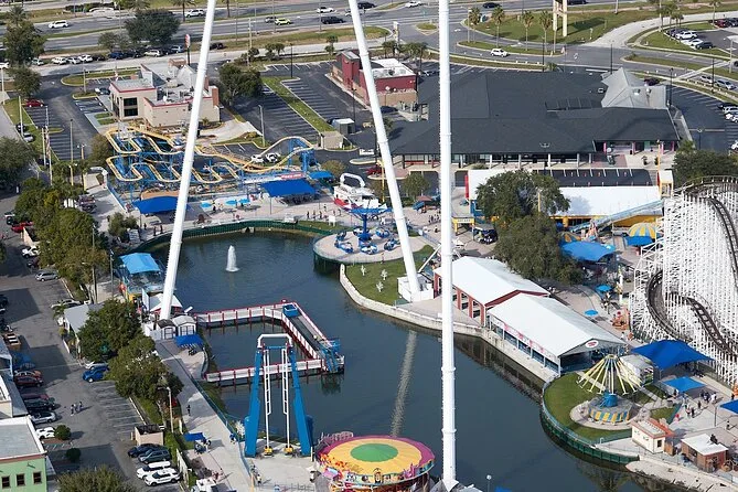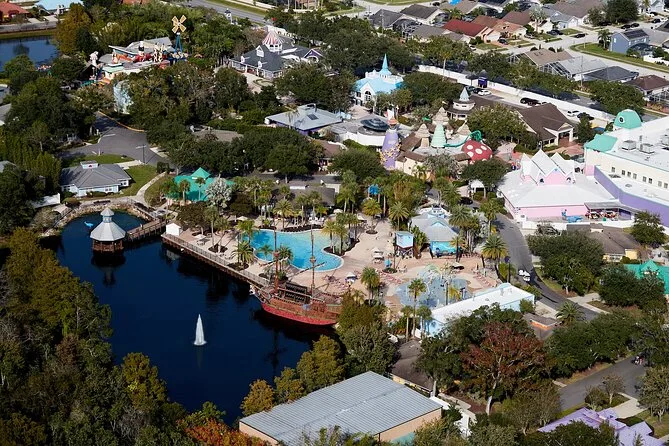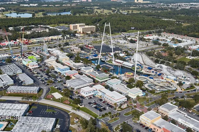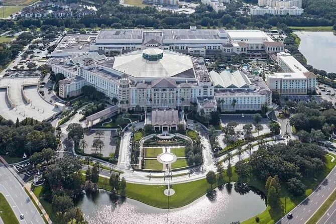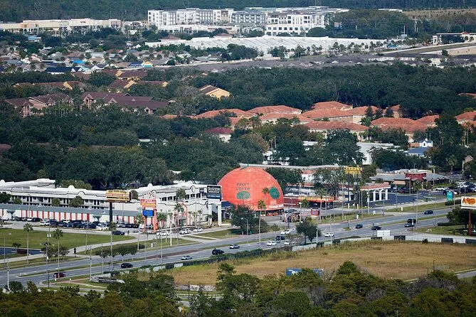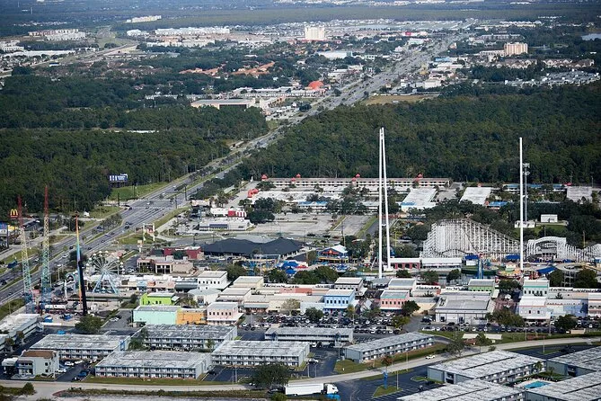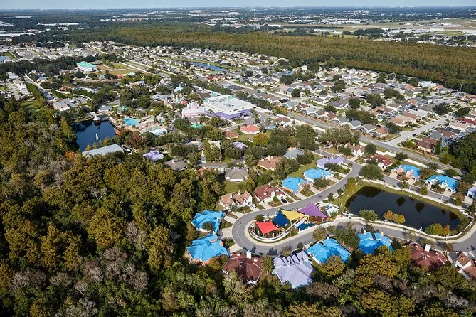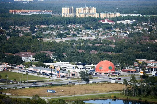 Du fliegst über Give Kids The World Village, The Big Orange, Gaylord Palms Resort, Old Town, Fun Spot America und die Stadt Kissimmee.