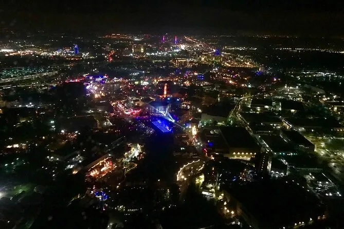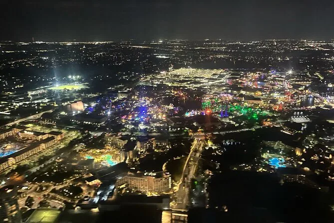 Die ersten Sekunden in der Luft waren ein echtes Erlebnis – mein Magen machte diesen typischen Achterbahn-Kniff, als wir über Fun Spot America abhoben, die blinkenden Lichter unten wirkten winzig und lebendig. Mark erzählte weiter über die Headsets und zeigte auf alles: „Links ist Volcano Bay… seht ihr das Orlando Eye?“ Von oben sah es fast unwirklich aus, wie es über die Skyline von Orlando leuchtete. Ich roch plötzlich eine Mischung aus Jet-Treibstoff und Popcorn, die von Disney Springs heraufzog (oder ich bildete es mir ein) – und mir wurde klar, wie viel Leben in dieser Stadt steckt. Der Gedanke „private helicopter tour Orlando“ schoss mir durch den Kopf, denn ehrlich, wir waren ganz allein da oben – drei Plätze mit freiem Blick auf die Stadt.