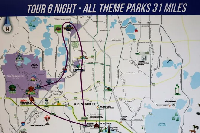 Du fliegst über Aquatica, Discovery Cove, Orlando Eye, Universal Studios, Volcano Bay, Downtown Orlando, Disney Springs, Typhoon Lagoon, EPCOT, Hollywood Studios, ESPN Sports Complex, Old Town und Fun Spot Kissimmee.