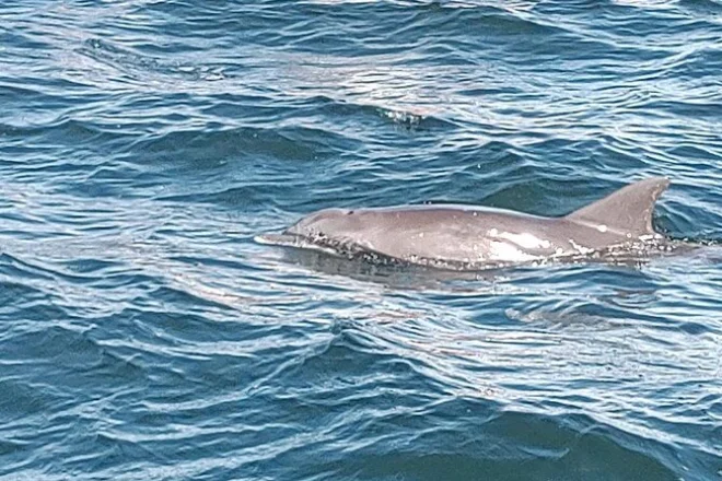 Ich hatte nicht erwartet, wie sanft das Wasser beim Eintauchen sein würde (ich dachte immer an einen kalten Schock, aber es war eher ein zartes Willkommen). Die Delfine hielten sich anfangs zurück – kluge Tiere, keine Angeber – doch dann kam einer so nah, dass ich ihm kurz in die Augen schauen konnte. Das lässt sich schwer beschreiben, aber ein wildes Tier auf seinen eigenen Bedingungen zu treffen, bleibt einem im Herzen. Kapitän Ray warf mir eine Schnorchelmaske zu („Die wirst du brauchen!“) und zeigte, wo man Muscheln findet, die zu groß zum Mitnehmen sind, aber trotzdem verlockend. Danach ließen wir uns treiben, während die Strömung uns Richtung Shell Island schob.