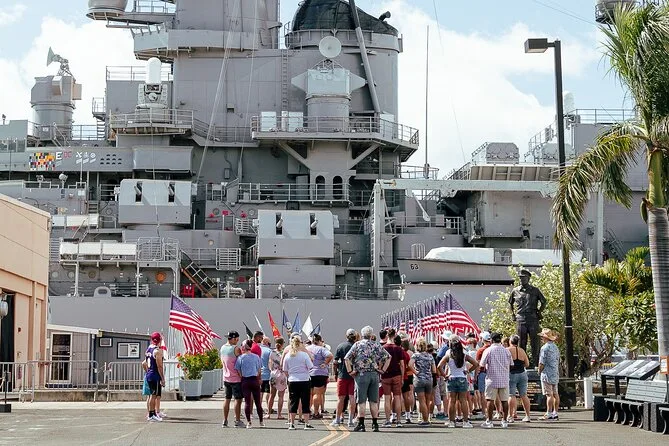 Die Tour dauert etwa einen halben Tag und umfasst Stopps im Pearl Harbor Visitor Center, USS Arizona Memorial, Battleship Missouri und Downtown Honolulu.