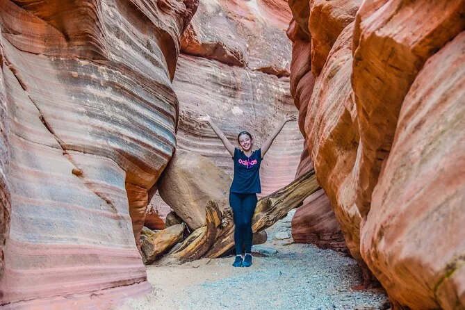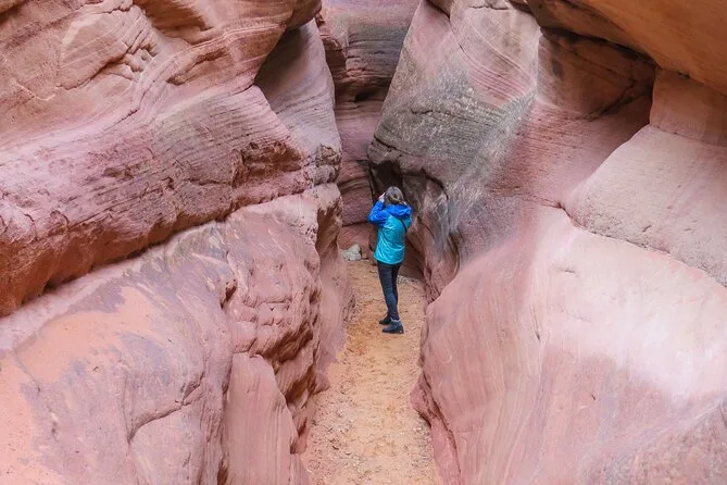Dein Tag beinhaltet den Transport im 4WD ab Kanab mit einem lokalen Guide, der unterwegs spannende Geschichten erzählt, sowie einfache Snacks, damit du beim Erkunden des Peekaboo Slot Canyon und weiterer Orte in der Nähe gestärkt bist, bevor es zurückgeht.