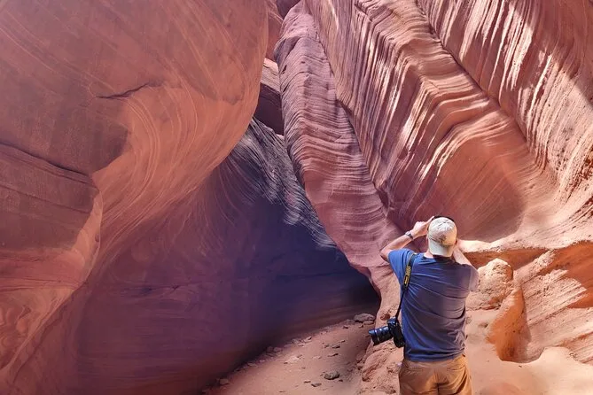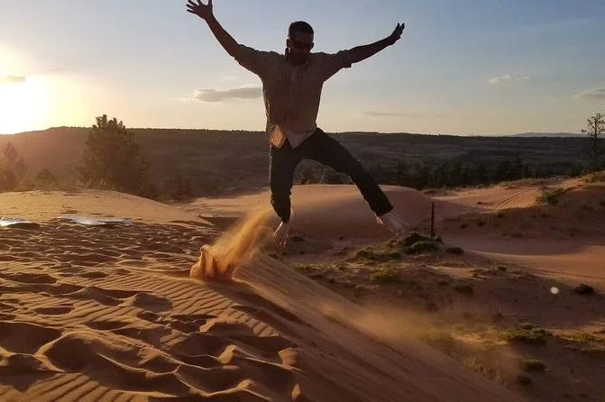 Mit einem lokalen Guide fährst du im UTV zum Peekaboo Slot Canyon, erkundest seine stillen, engen Schluchten und spielst bei Sonnenuntergang auf den Sanddünen – mit Sandboarding, wenn du Lust hast. Die private Tour beinhaltet Wasserflaschen und den kompletten Transport. Freu dich auf Lachen, staubige Schuhe und Momente, die du lange im Herzen behältst.